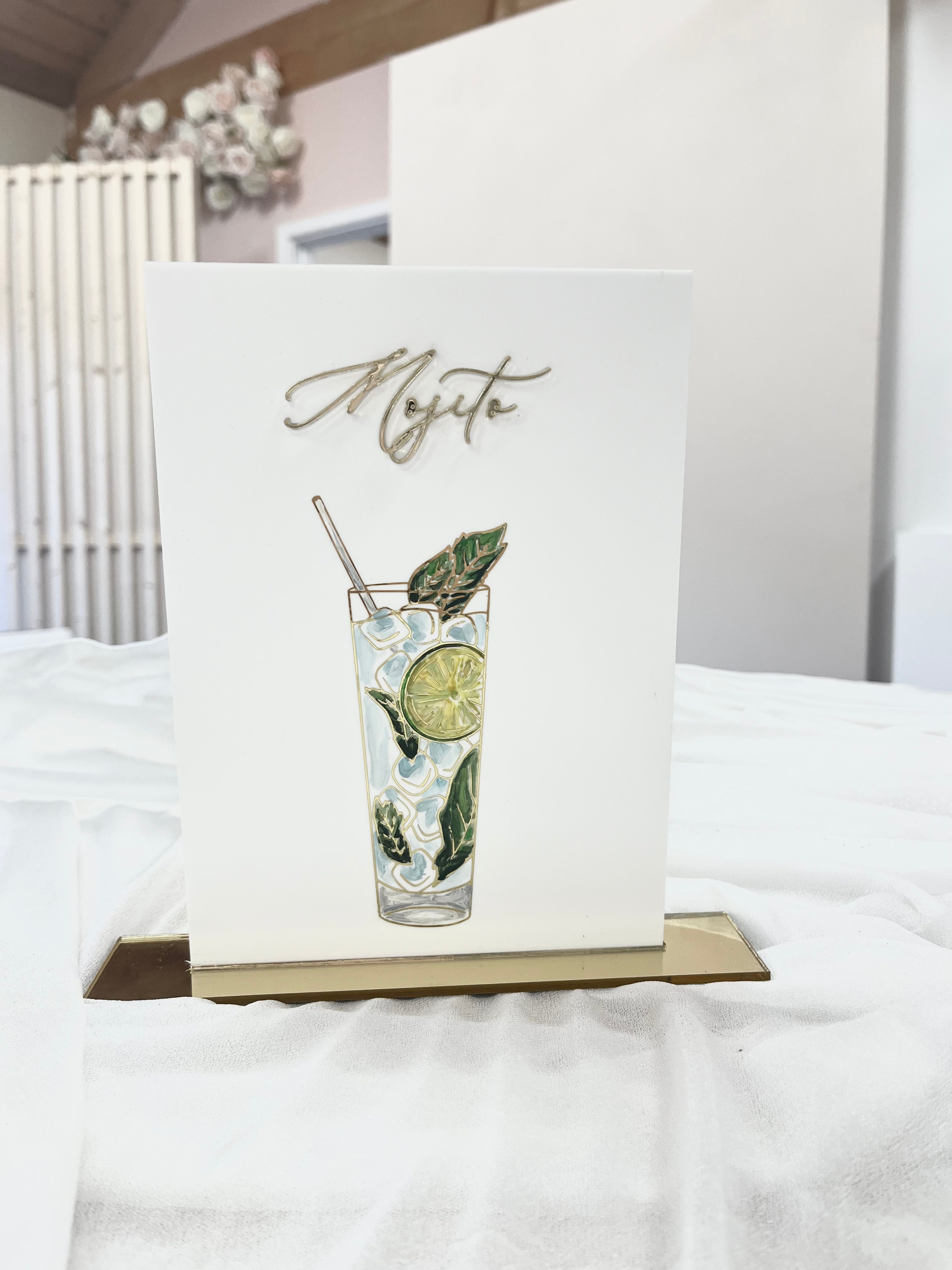 Make your wedding reception extra special with our illustrated table signs. Each table sign will be carefully hand-drawn and painted, adding a personal touch to your table decor.