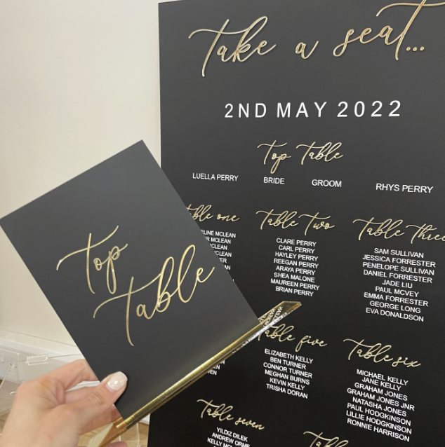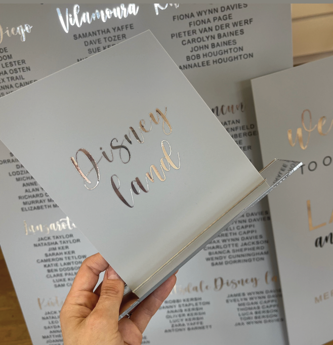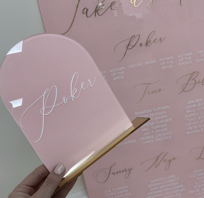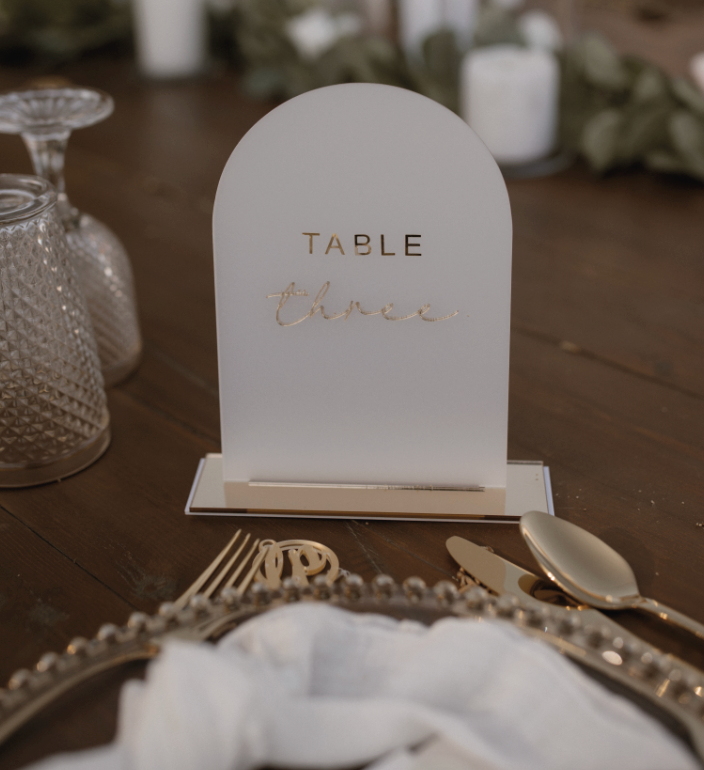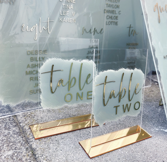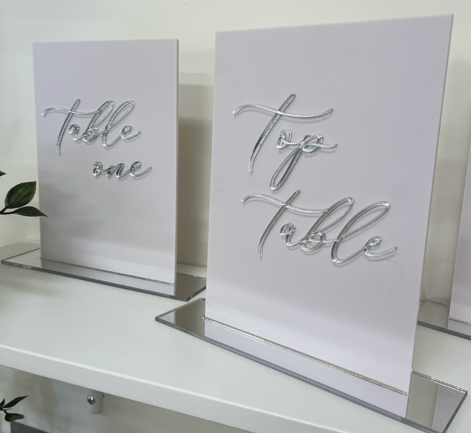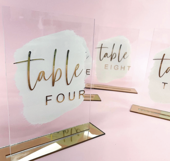 With over 30 different acrylics to choose from, each table sign can be finished in a matte, gloss, frosted or even a paint colour of your choice. We can even colour match your desired swatch!